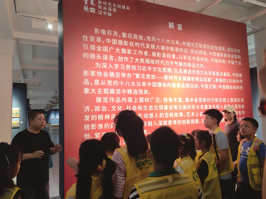 20组家庭的小朋友在一片欢声笑语中走进展厅,参观《第六届辽宁省青年摄影大展暨第十一届辽宁省青年摄影十佳作品展》和《繁花竞放——新时代全国摄影精品巡展辽宁站》展览。陈鹏馆长从题材、角度、内容等多个方面进行讲解,景色、人文……小朋友们听得入神,不时提出些天马行空的问题,引出阵阵笑声。艺术的种子悄然在孩子们心里发芽,今天观展的孩童,也许就是明天的摄影大师。