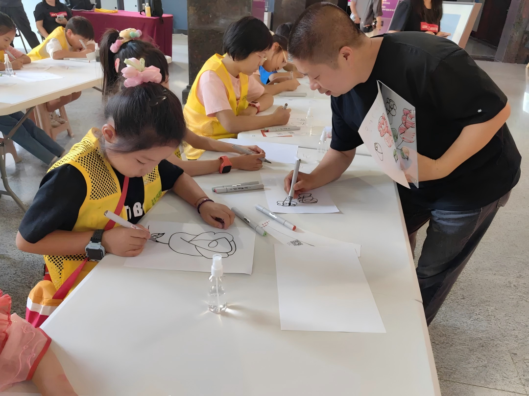 看完听完,便到了动手实践的时候。小朋友们一一坐好,在陈鹏馆长的带领下,用趣味十足的口诀在咖啡杯套上画玫瑰!刚才还叽叽喳喳的孩子们,瞬间投入到创作中……