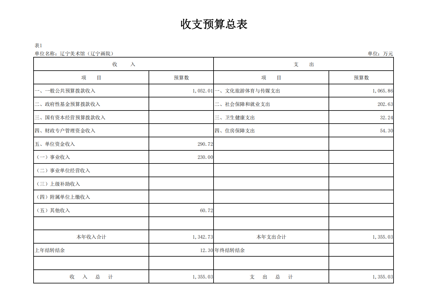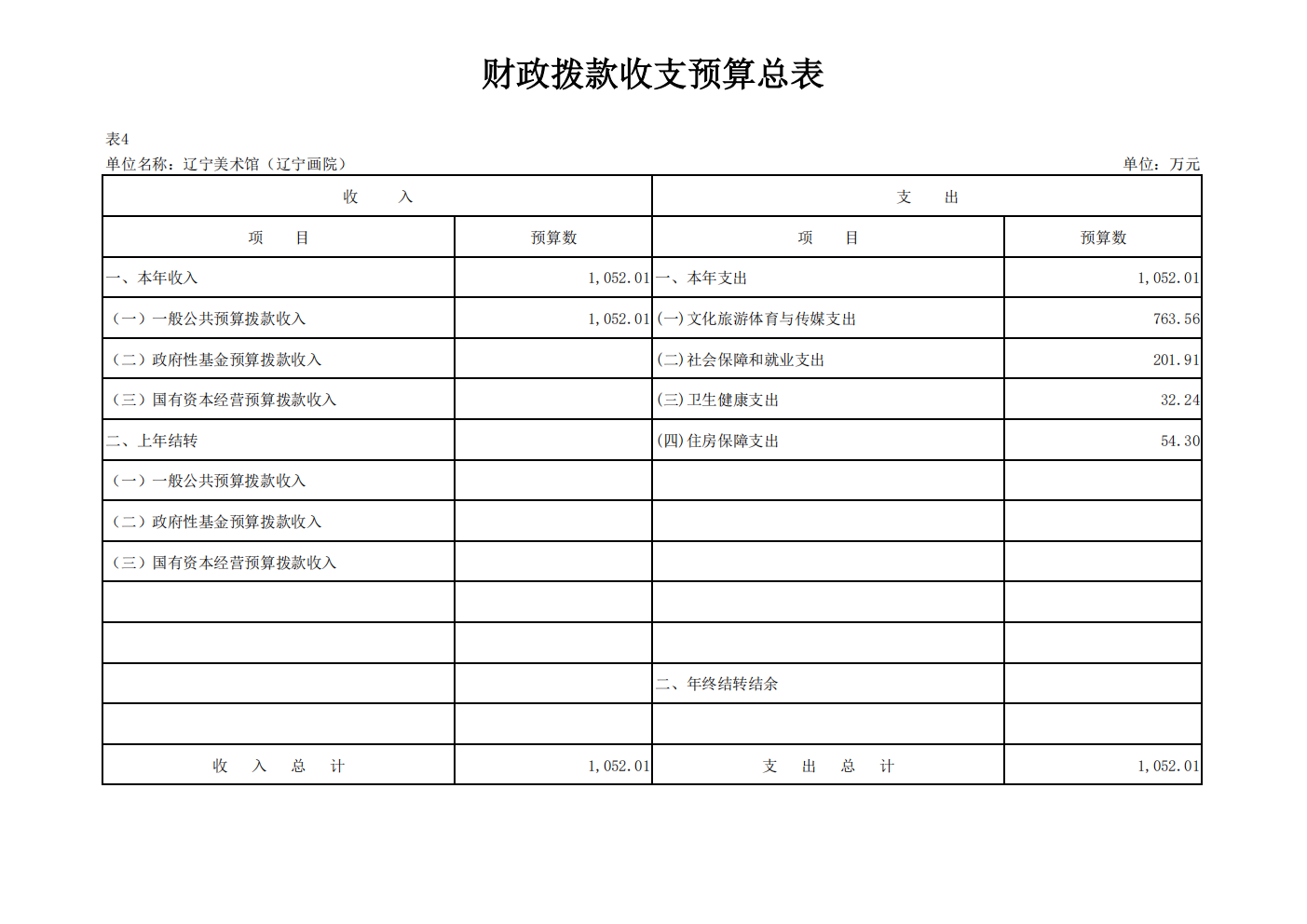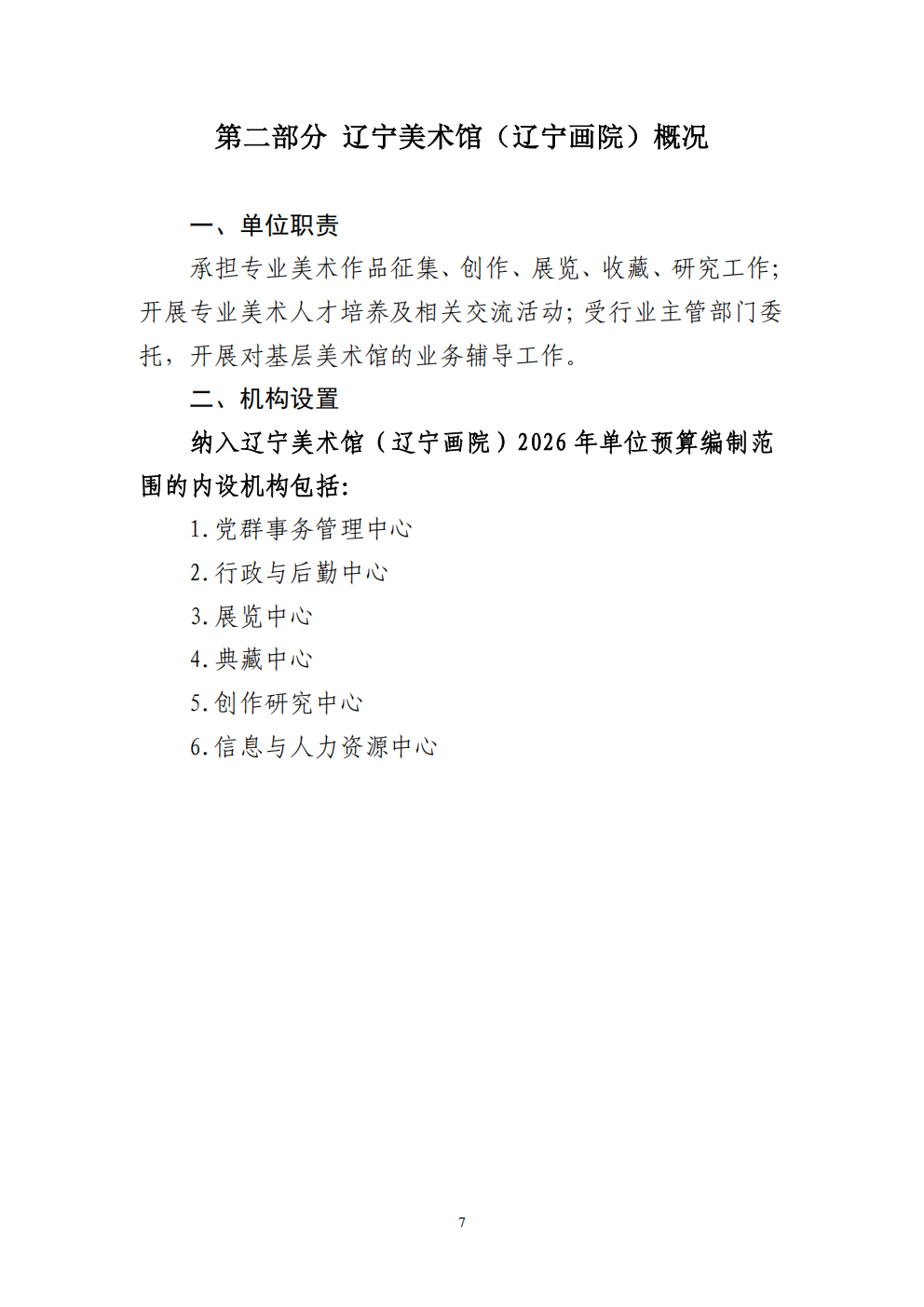 辽宁美术馆(辽宁画院) 2026 年度单位预算
