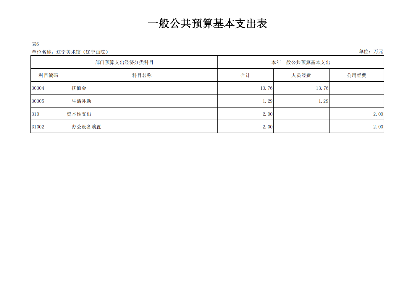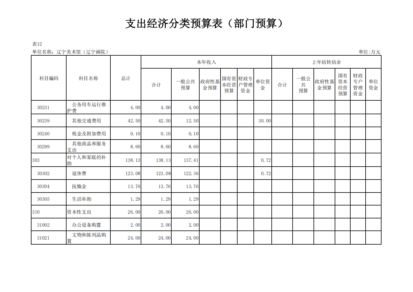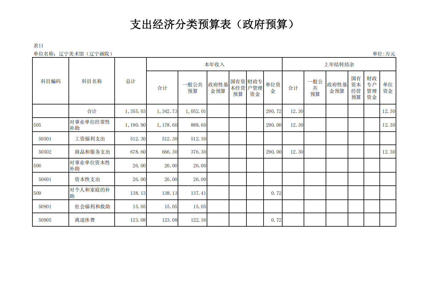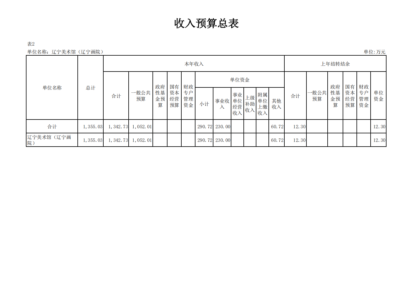 辽宁美术馆(辽宁画院) 2026 年度单位预算