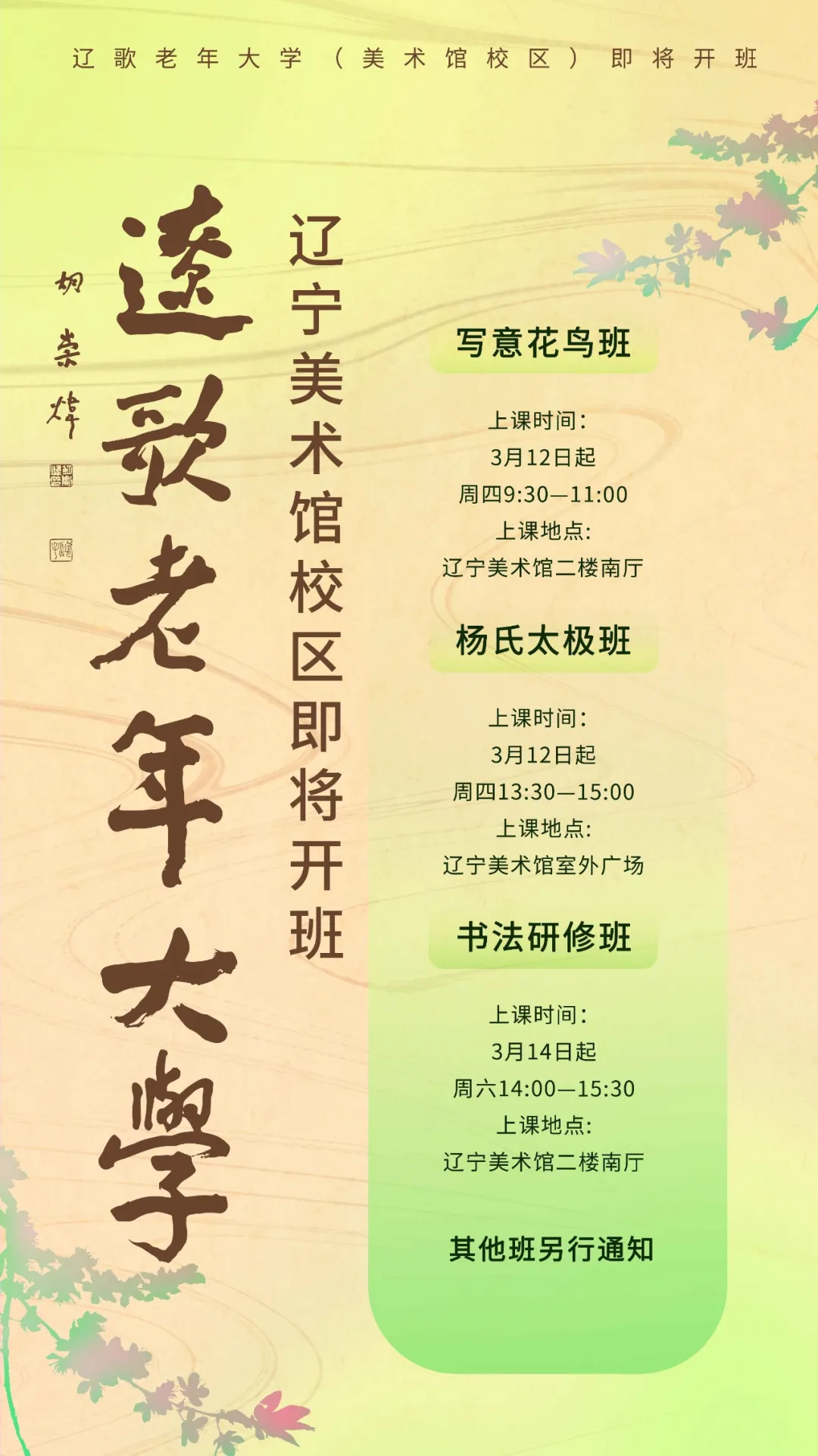 辽歌老年大学辽宁美术馆校区2026年春季课程即将开班