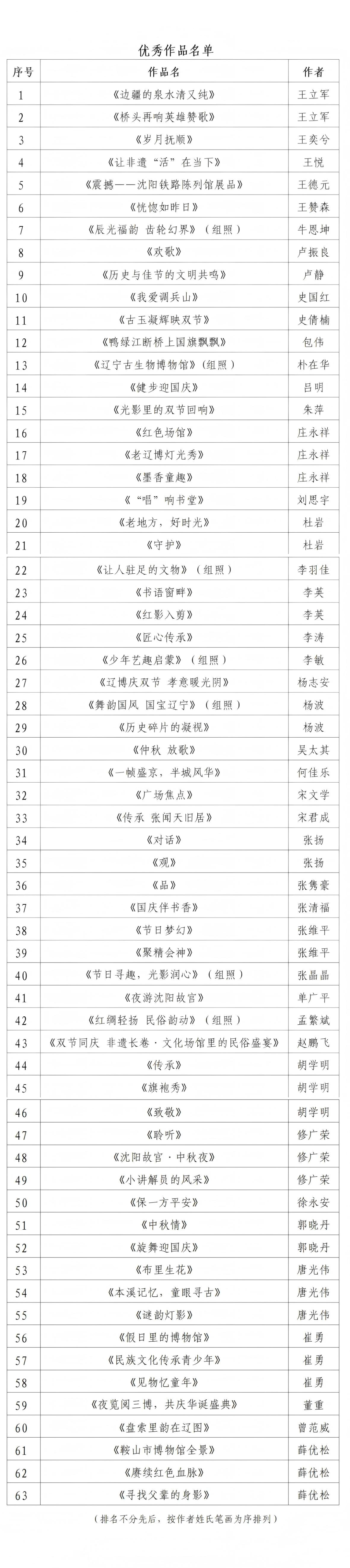 经专家评选并公示后,共选出优秀作品63件/组,95幅。作品用光影作诗,以镜头为媒,既展现了辽宁历史底蕴与时代风貌,又捕捉了双节期间群众感受文化、乐享生活的鲜活场景,用影像语言讲述辽宁文化故事,以镜头定格活动精彩瞬间,全方位勾勒出辽宁文化的独特魅力。