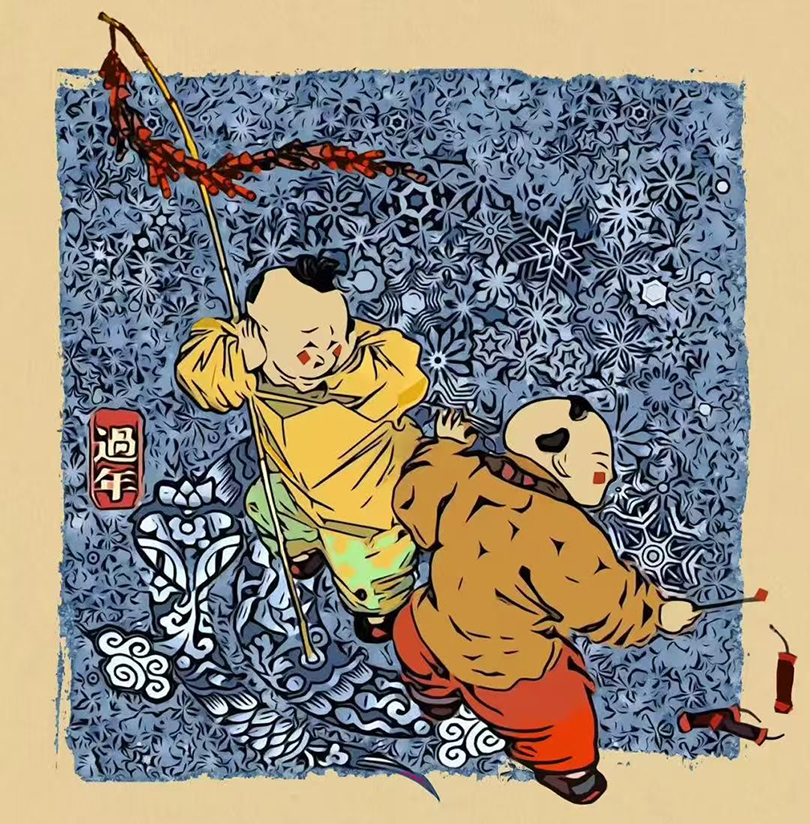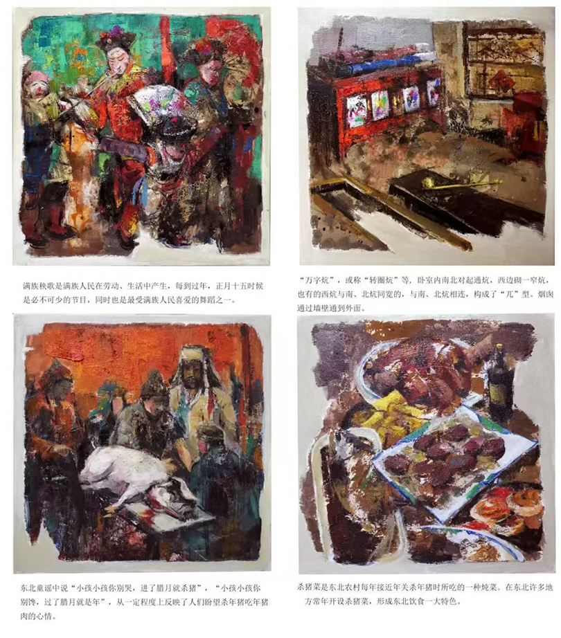 曲严松 《满乡过大年》50x50cmx4 油画(插图)