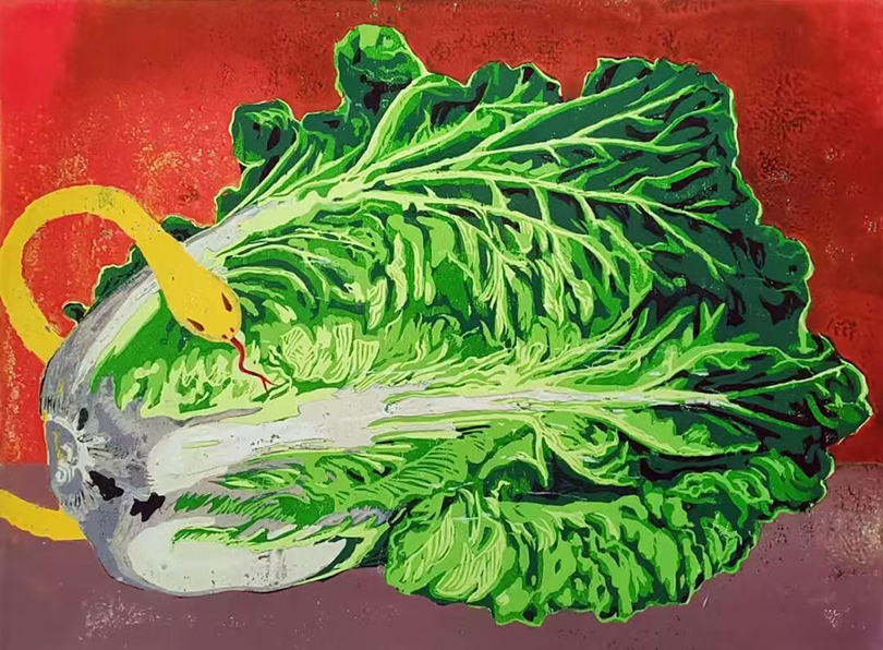 时宇 《金蛇缠百财生》34.5x25.5cm 版画