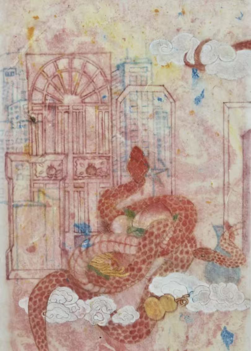 山雨濛 《灵蛇逸境》150x60cm 油画