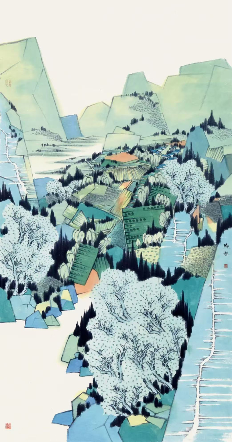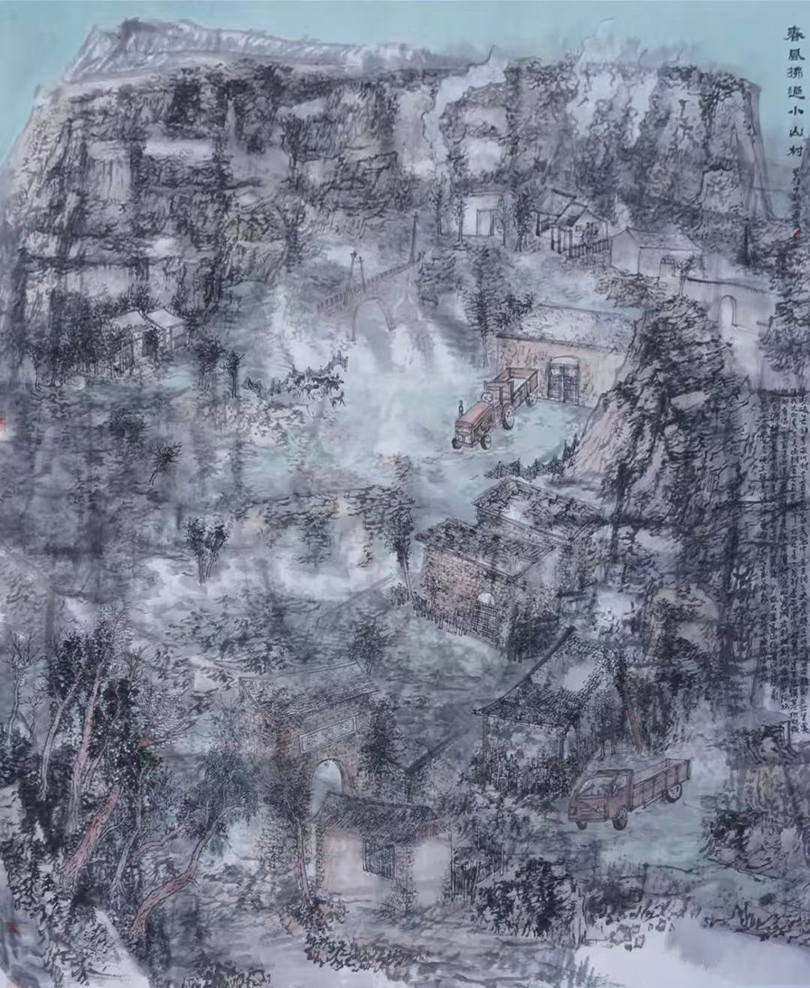 仇传澄 《春风拂过小山村》200×240cm 中国画