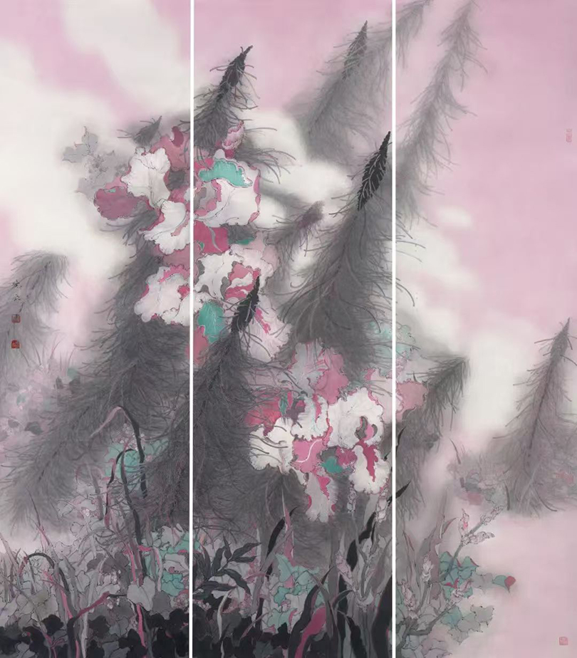 丛琳 《祥云织锦迎春来》39x68cm 中国画