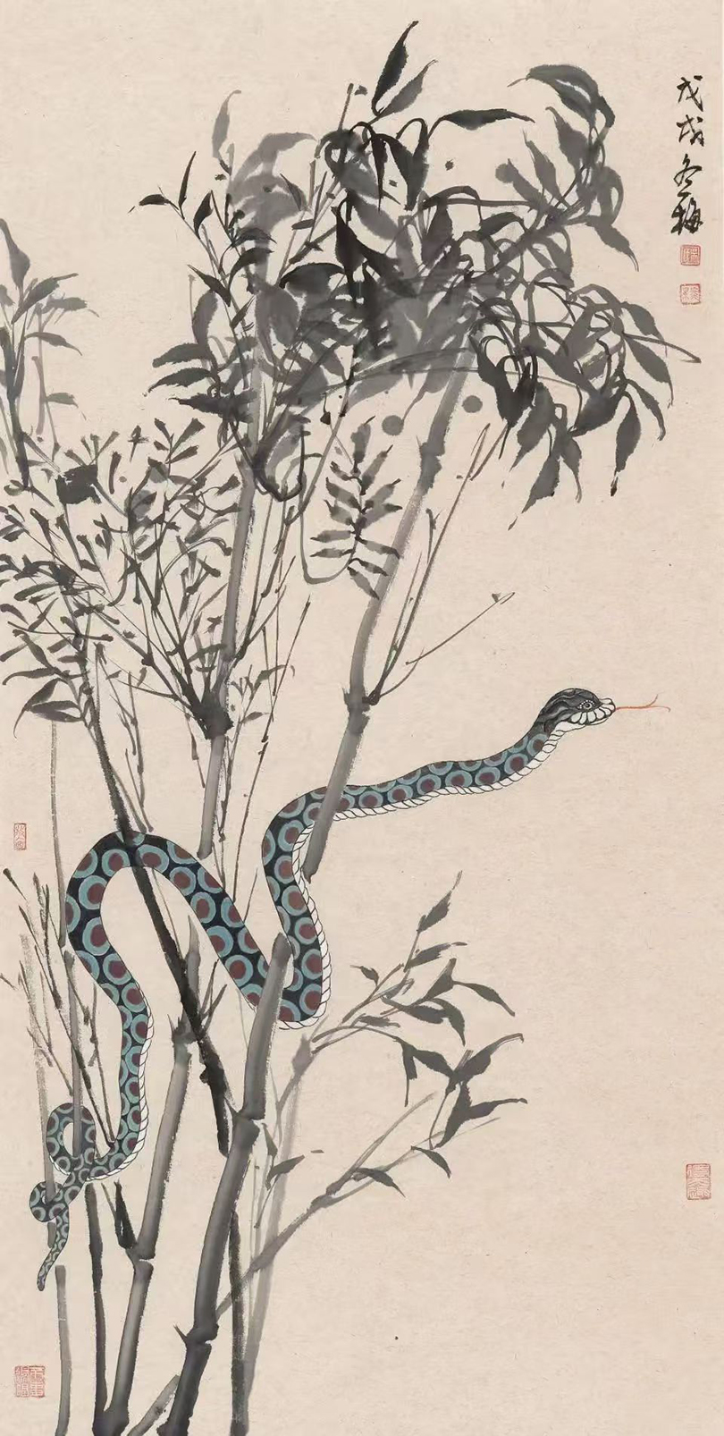 黄辞陪 《灵蛇开运》43x69cm 中国画