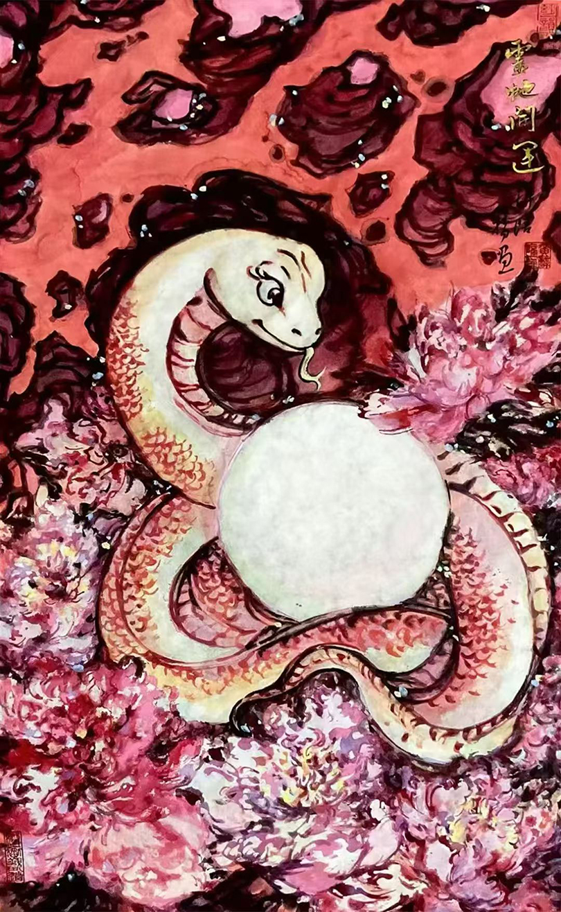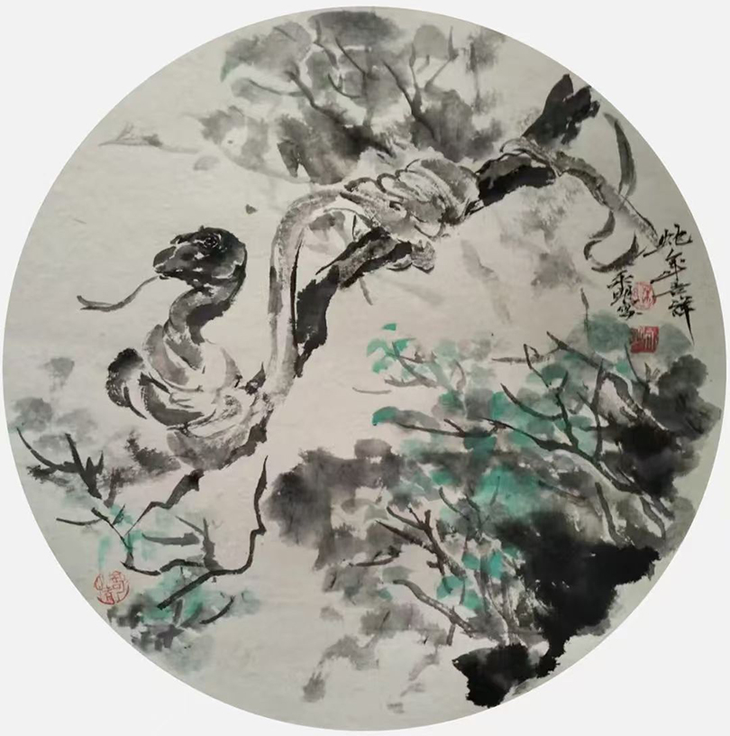 朱永明 《蛇年吉祥》50x50cm 中国画